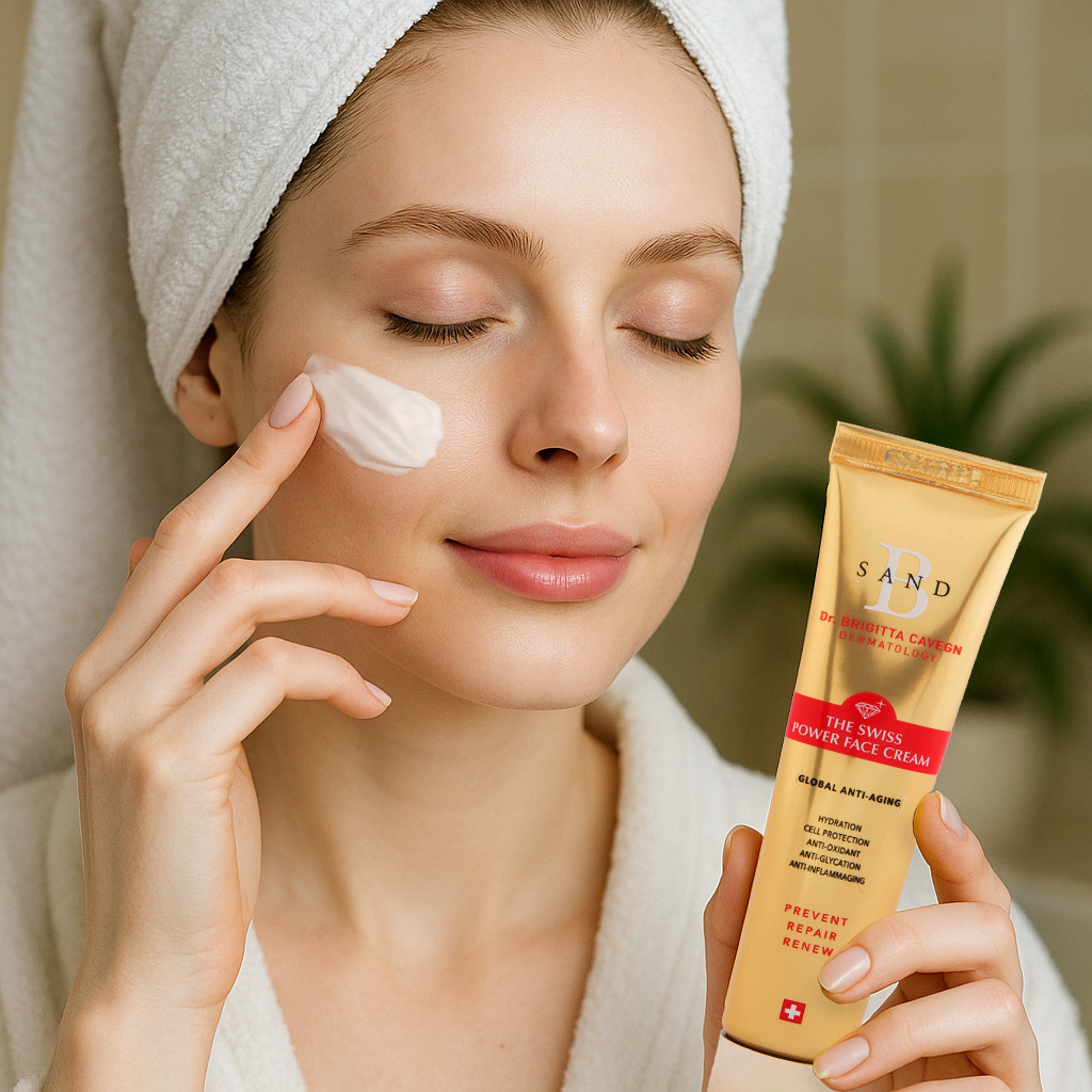 The Swiss Power Face Cream has an oestrogen and Botox-like effect, reduces wrinkles and discolouration, deeply hydrates, statistically significantly improves the skin’s immune response and protective vision.