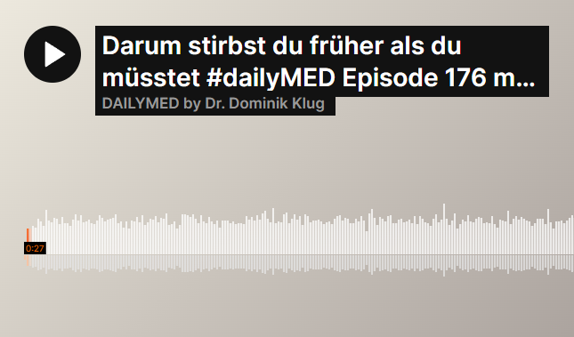 Dr. med. univ. Dominik Klug ist ein österreichischer Mediziner, Gesundheitscoach, Autor und Speaker. Er hilft Menschen das Maximum aus ihrer Gesundheit und Leistungsfähigkeit herauszuholen, damit sie ihren Alltag erfolgreicher meistern können. In seinem Podcast DAILY MED dreht sich alles um die Themen Medizin, Gesundheit und Langlebigkeit.